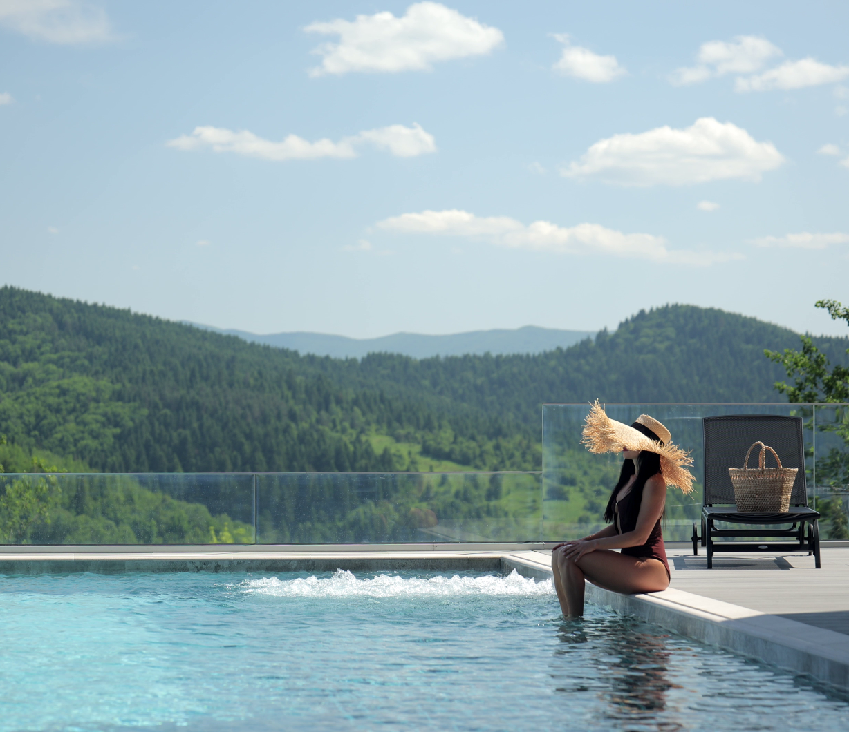 One of the main ones features Skhidnytsia Panorama is an outdoor infinity pool with a spectacular view of the mountains.
